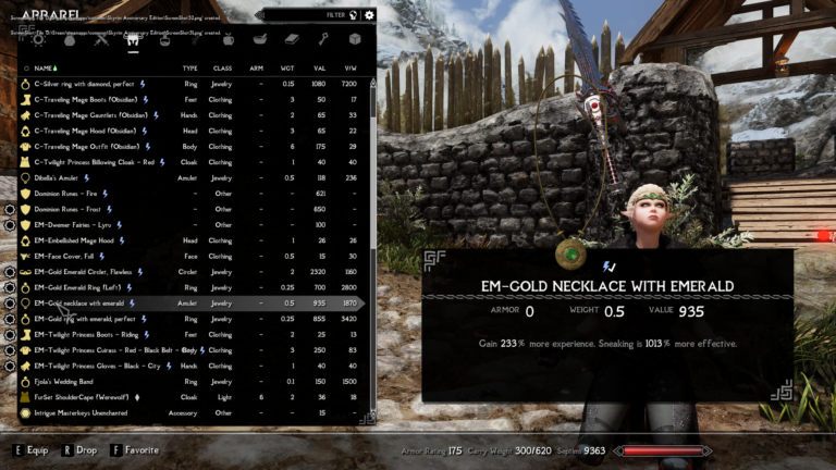 - Gold Necklace with Emerald – Gain 233% more experience. Sneak is 1013% more effective.