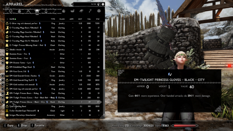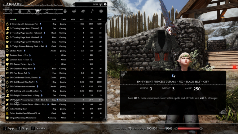 - Twilight Princess Cuirass – Gain 86% more experience. Destruction spells and effects are 233% stronger.