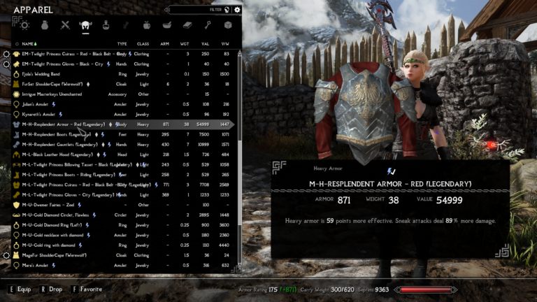 - Resplendent Armor – Heavy armor is 59 points more effective. Sneak attack deals 89% more damage.
