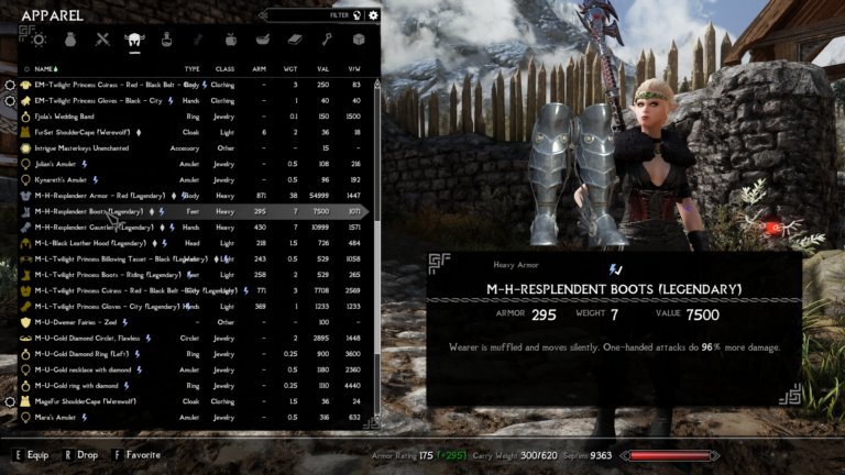 - Twilight Princess Boots – Wearer is muffled and move silently. One-handed attacks do 96% more damage.