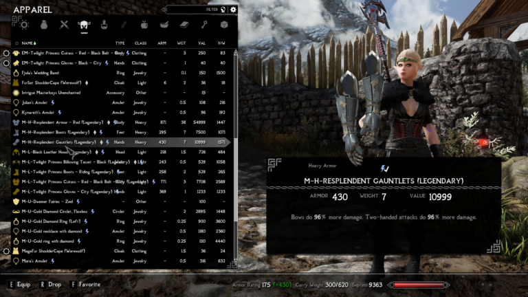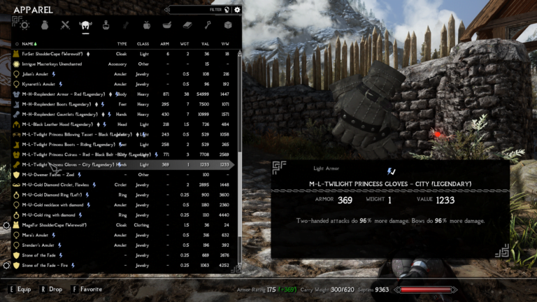 - Twilight Princes Gloves – Two-handed attacks do 96% more damage. Bows do 96% more damage.
