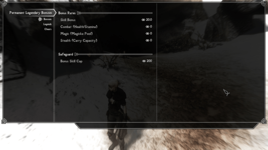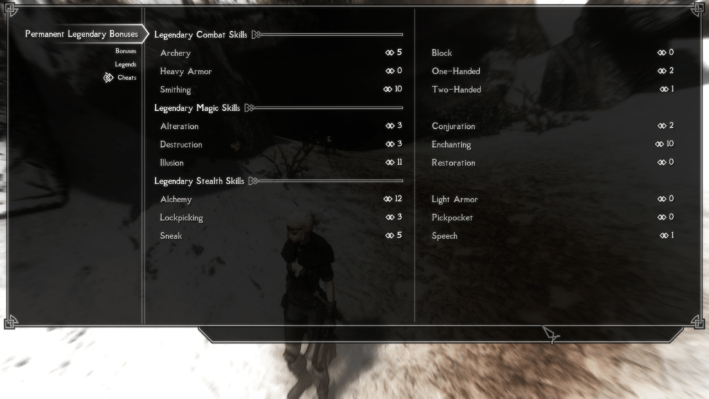 - In the „Cheats“ tab you can change the legendary level from 0 to 10. I don’t change it – I don’t cheat. As you improve your skills and increase your legendary level, this table will change by itself.
